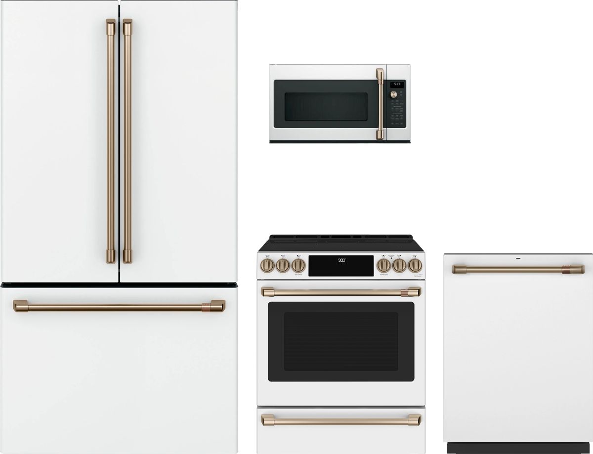 Café™ 4 Piece Matte White Kitchen Package with a French door refrigerator, Slide In Induction Range, Over The Range Microwave, and Built In Dishwasher .Read More